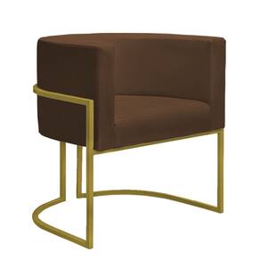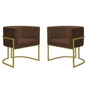 Kit 2 Poltronas Reforçadas Decorativa Sala Nayara Base Ferro Dourado Suede Capuccino - Marrom