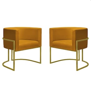 Kit 2 Poltronas Reforçadas Decorativa Sala Nayara Base Ferro Dourado Suede - Mostarda