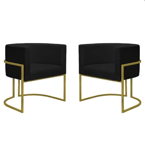 Kit 2 Poltronas Reforçadas Decorativa Sala Nayara Base Ferro Dourado Suede - Preto