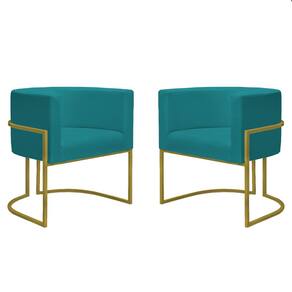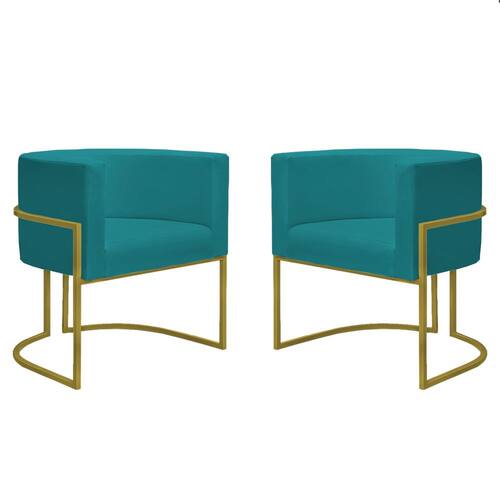 Kit 2 Poltronas Reforçadas Decorativa Sala Nayara Base Ferro Dourado Suede - Azul