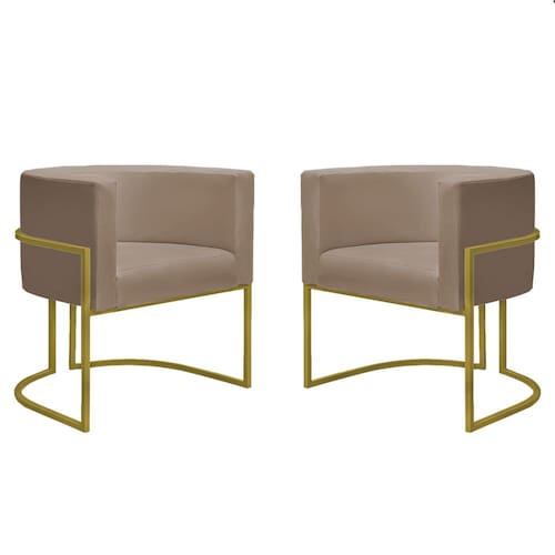 Kit 2 Poltronas Reforçadas Decorativa Sala Nayara Base Ferro Dourado Suede - Marrom Cacau