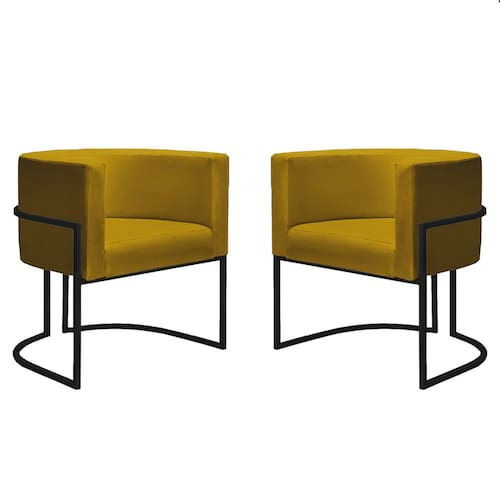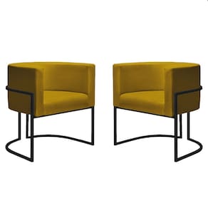 Kit 2 Poltronas Reforçadas Decorativa Sala Nayara Base Ferro Preto Suede Amarelo