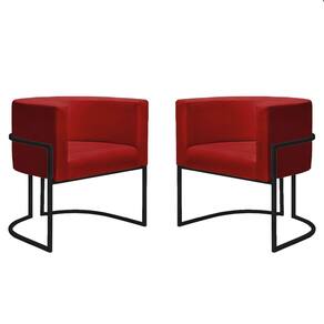 Kit 2 Poltronas Reforçadas Decorativa Sala Nayara Base Ferro Preto Suede Vermelho