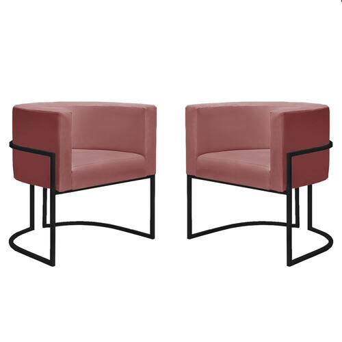 Kit 2 Poltronas Reforçadas Decorativa Sala Nayara Base Ferro Preto Suede - Rosê