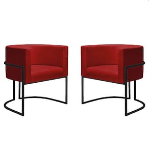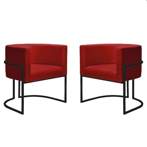 Kit 2 Poltronas Reforçadas Decorativa Sala Nayara Base Ferro Preto Suede - Vermelho
