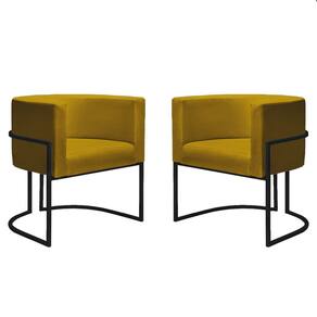 Kit 2 Poltronas Reforçadas Decorativa Sala Nayara Base Ferro Preto Suede - Amarelo