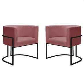 Kit 2 Poltronas Reforçadas Decorativa Sala Nayara Base Ferro Preto Suede