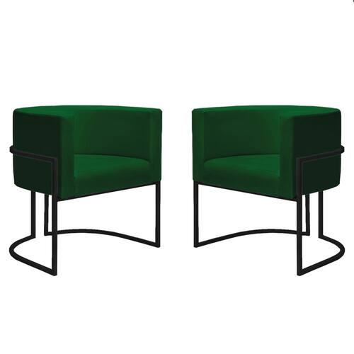 Kit 2 Poltronas Reforçadas Decorativa Sala Nayara Base Ferro Preto Suede - Verde