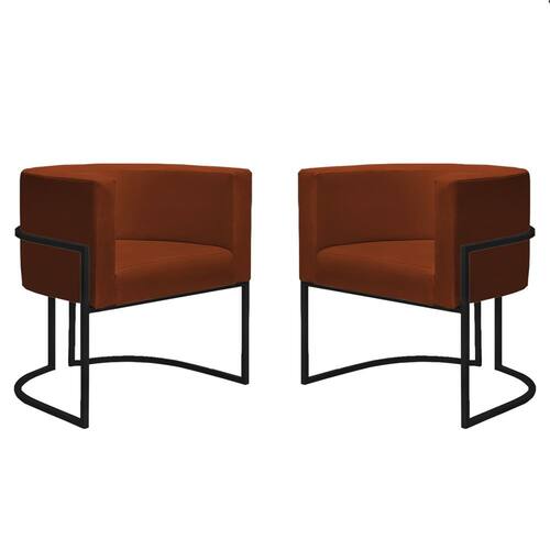 Kit 2 Poltronas Reforçadas Decorativa Sala Nayara Base Ferro Preto Suede - Bronze