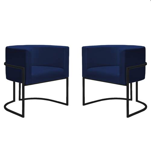 Kit 2 Poltronas Reforçadas Decorativa Sala Nayara Base Ferro Preto Suede - Azul Marinho