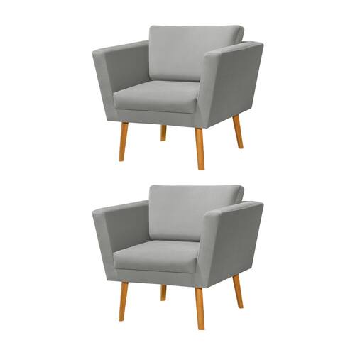 Kit 2 Poltronas Retrô Pés Palito em Madeira Paraty Veludo Cinza Claro