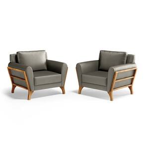 Kit 2 Poltronas Sabrina De Madeira Maciça Com Almofada Veludo Chumbo 109 - Poltronas Para Sala De Estar E Amamentação