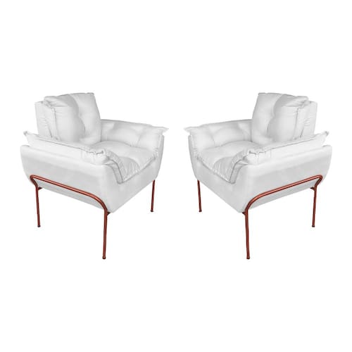 Kit 2 Poltronas Sala Base Cobre Suede Branco - Vallisa Decor