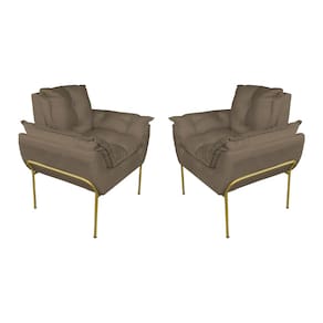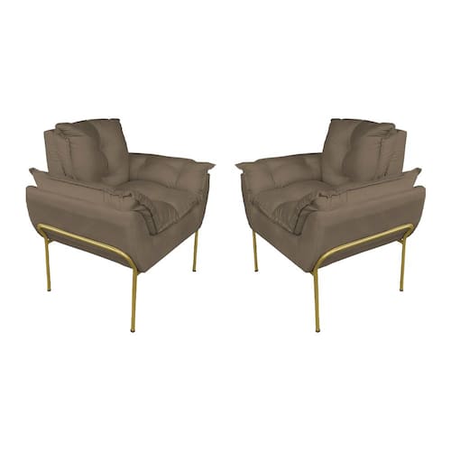 Kit 2 Poltronas Sala Base Dourada Suede Cappucino - Vallisa Decor - Preto