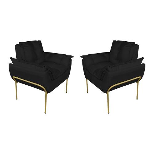 Kit 2 Poltronas Sala Base Dourada Suede Preto - Vallisa Decor
