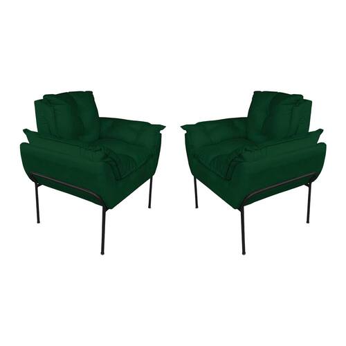 Kit 2 Poltronas Sala Base Preta Suede Verde - Vallisa Decor