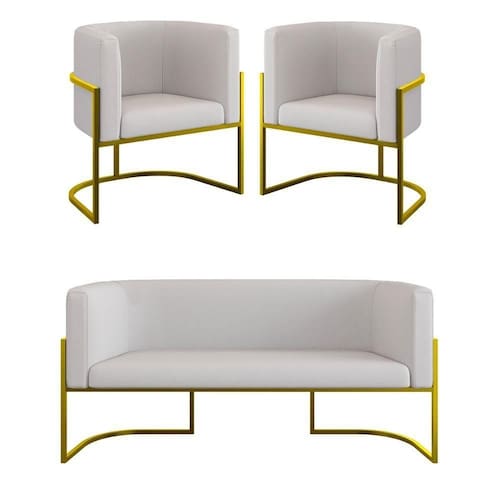 Transforme o seu ambiente com o Kit 2 Poltronas + Sofá 2 Lugares para Recepção Gold Veludo. Este kit é a combinação perfeita de conforto, durabilidade e um design moderno, ideal para mesas de jantar, áreas de estar e até mesmo ambientes comerciais.