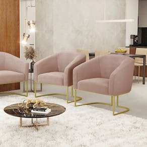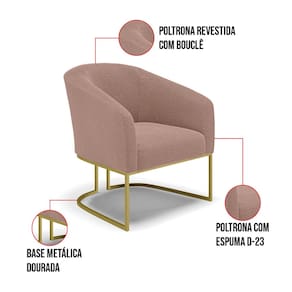 Kit 2 Poltronas Stella Bouclê Base Metálica Industrial Dourado - D`Rossi - Rosê