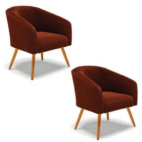 Kit 2 Poltronas Stella Bouclê Pés Palito Castanho - D`rossi Cor Terra - Blush