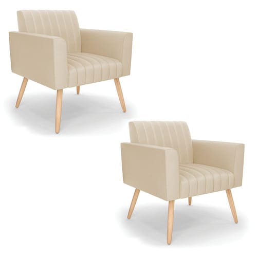Quer uma decoração única e sofisticada? A Poltrona Viena é ideal para quem está em busca de um móvel versátil e diferenciado. Esse tipo de peça é ideal para ambientes modernos e descontraídos. Vem com uma ideia totalmente diferente, devido sua curva e forma suave, os detalhes gomados do tecido são tendências de decoração atuais. O tom Bege vem ganhando cada vez mais espaço no mercado, uma cor que traz elegância e combina com vários tipos de decoração. Uma dica legal de complemento é escolher almofadas que combinem com a poltrona. Sua estrutura é confeccionada em madeira de eucalipto proveniente de reflorestamento, o estofamento do assento é composto de espuma prorelax D-28 no encosto, e é revestido em Corino um tecido aconchegante, resistente e extremamente luxuoso. Sua sustentação é dada pelos tradicionais pés palito natural, suportando em média até 115 Kg. Crie um lindo efeito visual, em qualquer lugar da sua casa ou escritório! Garanta já seu Kit 2 Poltronas Viena.