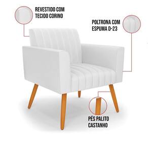 Quer uma decoração única e sofisticada? A Poltrona Viena é ideal para quem está em busca de um móvel versátil e diferenciado. Esse tipo de peça é ideal para ambientes modernos e descontraídos. Vem com uma ideia totalmente diferente, devido sua curva e forma suave, os detalhes gomados do tecido são tendências de decoração atuais. Uma dica legal de complemento é escolher almofadas que combinem com a poltrona. Sua estrutura é confeccionada em madeira de eucalipto proveniente de reflorestamento, o estofamento do assento é composto de espuma prorelax D-28 no encosto, e é revestido em Corino um tecido aconchegante, resistente e extremamente luxuoso. Sua sustentação é dada pelos tradicionais Pés Palito Castanho, suportando em média até 115 Kg. Crie um lindo efeito visual, em qualquer lugar da sua casa ou escritório! Garanta já seu Kit 2 Poltronas Viena.