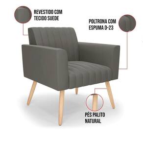 Quer uma decoração única e sofisticada? A Poltrona Viena é ideal para quem está em busca de um móvel versátil e diferenciado. Esse tipo de peça é ideal para ambientes modernos e descontraídos. Vem com uma ideia totalmente diferente, devido sua curva e forma suave, os detalhes gomados do tecido são tendências de decoração atuais. O tom Grafite vem ganhando cada vez mais espaço no mercado, uma cor que traz elegância e combina com vários tipos de decoração. Uma dica legal de complemento é escolher almofadas que combinem com a poltrona. Sua estrutura é confeccionada em madeira de eucalipto proveniente de reflorestamento, o estofamento do assento é composto de espuma prorelax D-28 no encosto, e é revestido em Suede um tecido aconchegante, resistente e extremamente luxuoso. Sua sustentação é dada pelos tradicionais pés palito natural, suportando em média até 115 Kg. Crie um lindo efeito visual, em qualquer lugar da sua casa ou escritório! Garanta já seu Kit 2 Poltronas Viena.