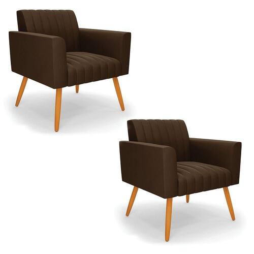 Quer uma decoração única e sofisticada? A Poltrona Viena é ideal para quem está em busca de um móvel versátil e diferenciado. Esse tipo de peça é ideal para ambientes modernos e descontraídos. Vem com uma ideia totalmente diferente, devido sua curva e forma suave, os detalhes gomados do tecido são tendências de decoração atuais. O tom Marrom vem ganhando cada vez mais espaço no mercado, uma cor que traz elegância e combina com vários tipos de decoração. Uma dica legal de complemento é escolher almofadas que combinem com a poltrona. Sua estrutura é confeccionada em madeira de eucalipto proveniente de reflorestamento, o estofamento do assento é composto de espuma prorelax D-28 no encosto, e é revestido em Suede um tecido aconchegante, resistente e extremamente luxuoso. Sua sustentação é dada pelos tradicionais Pés Palito Castanho, suportando em média até 115 Kg. Crie um lindo efeito visual, em qualquer lugar da sua casa ou escritório! Garanta já seu Kit 2 Poltronas Viena.