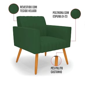 Quer uma decoração única e sofisticada? A Poltrona Viena é ideal para quem está em busca de um móvel versátil e diferenciado. Esse tipo de peça é ideal para ambientes modernos e descontraídos. Vem com uma ideia totalmente diferente, devido sua curva e forma suave, os detalhes gomados do tecido são tendências de decoração atuais. O tom Verde vem ganhando cada vez mais espaço no mercado, uma cor que traz elegância e combina com vários tipos de decoração. Uma dica legal de complemento é escolher almofadas que combinem com a poltrona. Sua estrutura é confeccionada em madeira de eucalipto proveniente de reflorestamento, o estofamento do assento é composto de espuma prorelax D-28 no encosto, e é revestido em Veludo um tecido aconchegante, resistente e extremamente luxuoso. Sua sustentação é dada pelos tradicionais Pés Palito Castanho, suportando em média até 115 Kg. Crie um lindo efeito visual, em qualquer lugar da sua casa ou escritório! Garanta já seu Kit 2 Poltronas Viena.