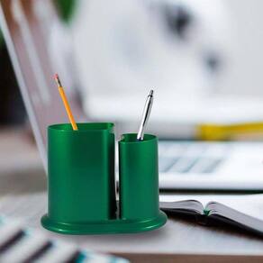 Porta Lápis Duo feito em Plástico Premium PP resistente, cores com pigmento de efeito metalizado, com duas cavidades, espaço para cartão de visita, prático, uma excelente opção para organizar lápis, canetas, marcadores e outros acessórios na mesa de trabalho e/ou estudo. Imagens meramente ilustrativas. Marca: Bb Store Ean: 7908567051868