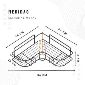 Especificações: - Material: Metal - Prateleira Menor: Braço do L com 26 cm x 11 cm, altura 4 cm - Prateleira Maior: Braço do L com 28 cm x 13 cm, altura 4 cm - Placa adesiva: Autocolante com 02 dentes de plástico como suporte - Cor: Preto