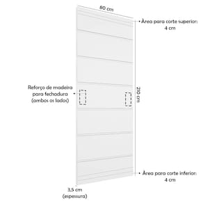 Informações Complementares: Folhas de Porta, Produto não acompanha Batente, fechadura, dobradiças e guarnição.Folha de Porta de Madeira Frisada tem o requadro em madeira de reflorestamento e reforço em madeira bilateral centralizado para colocação de fechadura. O enchimento é feito com colméia Honeycomb, produzido com papel semi-kraft com 160 folhas, o que confere maior resistência após a colagem da chapa de acabamento (Duratex).