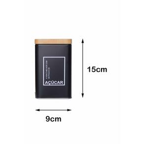As medidas do pote são: altura de 15cm, largura de 9cm e profundidade de 9cm. Com capacidade para 1 café e 1 açúcar, esse kit é ideal para quem busca organização e praticidade na cozinha.