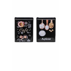 Material: Metal galvanizado com pintura Quantidade: 2 unidades ( 1 Cafe + 1 Açúcar)