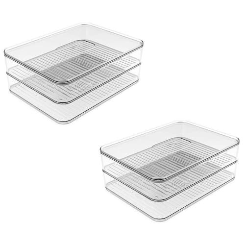 O Porta Frios Duplo Clear Fresh é o novo padrão de transparência para quem procura acondicionar e servir frios de forma simples e prática, promovendo beleza e funcionalidade para o dia a dia e ocasiões especiais. Empilhe, encaixe e enxergue facilmente os frios armazenados, mantendo tudo em ordem. Com design minimalista, ele combina com todos os tipos de cozinha, trazendo harmonização entre cor e transparência para facilitar a visualização dos itens sobre a mesa. Outro diferencial da linha está na sua superfície interna que possui ranhuras que evitam o contato dos frios diretamente na superfície do produto. Super transparência, beleza e cuidado com o alimento são características da linha Clear Fresh, perfeitas para auxiliar na organização da sua geladeira e facilitar o seu dia a dia.