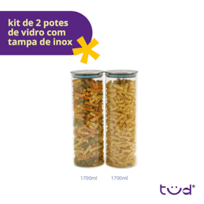 "Oii! Tud bem? Vem saber mais sobre o Kit de 2 potes de vidro com tampa de inox herméticos redondos da Tud!