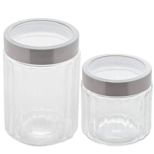 Kit 2 Potes de Vidro com Tampas Inox 870ml e 1,2L Lyor Sydney Biscoitos Cereais Porta Mantimentos Condimentos.