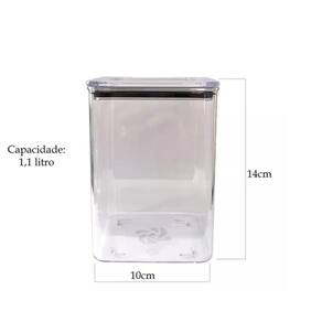 Material Durável: Acrílico resistente, proporcionando uma solução elegante e funcional.Vedação Hermética: Tampa com silicone que garante frescor prolongado, protegendo os alimentos de umidade.Empilháveis: Design eficiente que otimiza o espaço em prateleiras e armários.Sustentável: Solução reutilizável que minimiza o uso de embalagens plásticas descartáveis.Instruções de Uso: