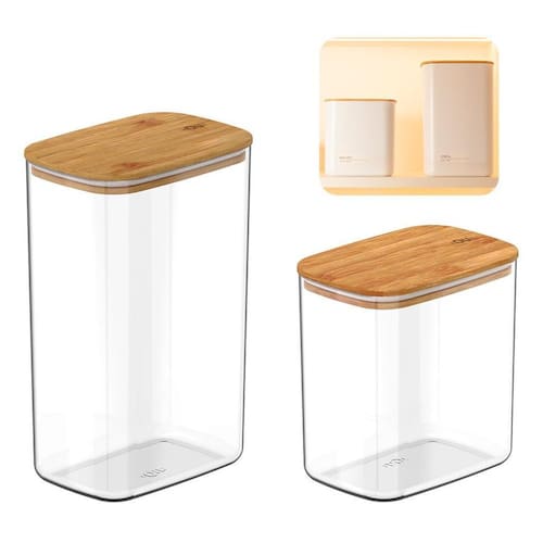 Descrição do Produto: Perfeito para facilitar o armazenamento e organização dos seus alimentos, o Kit de Potes Herméticos Keep traz transparência para uma visualização rápida e prática do conteúdo. Seu design modular possibilita uma arrumação personalizada, mantendo o padrão de altura entre os potes. A tampa de bambu, aliada ao anel de silicone, proporciona uma vedação hermética, preservando a qualidade dos alimentos e agregando um toque de sofisticação ao ambiente.