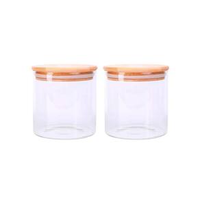 Kit 2 Potes de Vidro 500ml Com Tampa de Madeira Bambu Porta Condimentos Pote Hermético de Vidro com Tampa de Bambu: Conservação Elegante e Eficiente para seus Alimentos