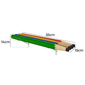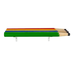 Prateleira Infantil Lápis Prateleira decorativa e funcional com frente em formato de lápis coloridos (amarelo, verde, vermelho e azul), ideal para expor livrinhos, brinquedos e objetos em quartos infantis, brinquedotecas e escolinhas.?