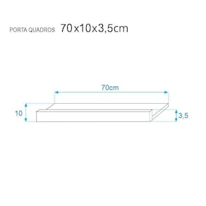 Kit 2 Prateleiras Porta Quadros 70 x 10cm azul Suporte Invisível. A prateleira Crie Fácil foi desenvolvida pensando em deixar o seu ambiente mais organizado e criativo de forma prática e simples. Produto produzido em MDP de alta qualidade garantindo resistência e durabilidade. A prateleira é acompanhada de suporte para fixação de embutir invisível. Cor: azul. Tamanho: 70 x 10cm. Material: Madeira MDP. Fixação: embutir invisível. Instruções de uso e instalação: Para fácil limpeza, utilize pano levemente umedecido. Não utilizar produtos químicos ou abrasivos. Acompanha embalagem com as instruções de montagem e fixação. *Observação: todos os itens de decoração das fotos não acompanham o produto Ean: 7899983680643