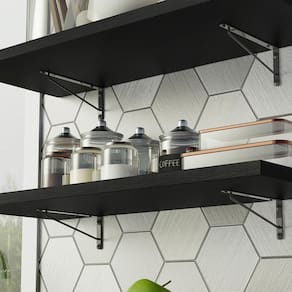 Bastante espaçosas e com 80 cm de largura, são perfeitas para organizar os utensílios e itens decorativos. Além disso, possuem instalação segura, feita com duas mão francesas em cada prateleira.