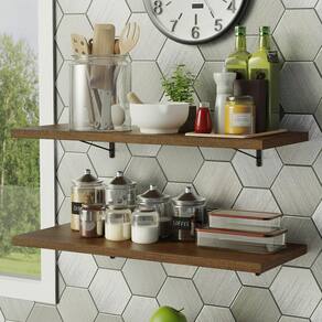 Bastante espaçosas e com 80 cm de largura, são perfeitas para organizar os utensílios e itens decorativos. Além disso, possuem instalação segura, feita com duas mão francesas em cada prateleira.