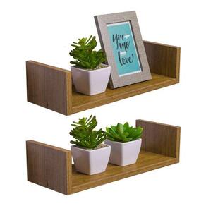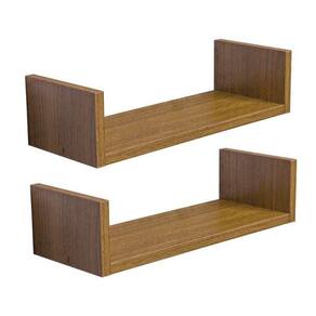 Kit 2 Prateleiras U 30 x 15cm Freijó Suporte Invisível - Marrom