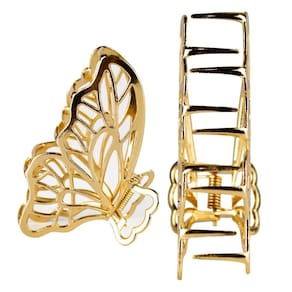 Ideal para todos os tipos de cabelo, uma tendencia que nunca sai de moda, pode ser combinado com diversos looks, desde os mais simples aos mais elegantes, utilizado para prender todo ou cabelo, ou apenas metade criando penteados versáteis para o dia a dia Feito com metal dourado resistente e forte, sua cor dourada não descasca. Prende o cabelo de forma segura, sem danificar o couro cabeludo ou os fios. A presilha de formato borboleta, trás delicadeza e elegância. As asas da borboleta são esculpidas com traços finos que formam várias partes de sua asa, criando um desenho incrível.