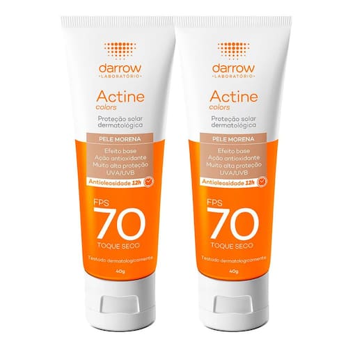 Protetor Solar Actine Colors Pele Morena FPS 70 Toque Seco 40g Actine, a linha expert em pele oleosa, mais prescrita pelos dermatologistas, possui uma linha completa de produtos desenvolvidos especialmente para peles brasileiras. Actine protetor solar FPS 70 colors possui um complexo de filtros que oferece amplo espectro de proteção solar contra os raios UVA/UVB, com pigmentos que ajudam a proteger contra a luz visível e minimizar o dano causado pelos raios infravermelhos devido à ação antioxidante do produto, evitando o fotoenvelhecimento e prevenindo manchas solares. Além disso, possui um complexo de ativos [vitamina E + sílica de ultra absorção], ajudando a prevenir a acne com um potente controle de oleosidade de até 12 horas. Actine protetor solar FPS 70 colors possui uma textura fluida de rápida absorção, promovendo uniformização do tom da pele com uma cobertura duradoura. Ideal para peles oleosas a acneicas. Disponível em 3 tons: Pele clara, morena e morena mais. Fórmula segura, livre de parabenos e perfume. Hipoalergênico. Não comedogênico. Não causa acne. Não testado em animais. Para crianças menores de 6 meses, consultar um médico. Este produto não oferece nenhuma proteção contra insolação. Evite exposição prolongada das crianças ao sol. Este produto foi formulado de maneira a minimizar o possível surgimento de alergias.