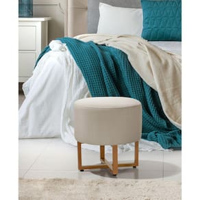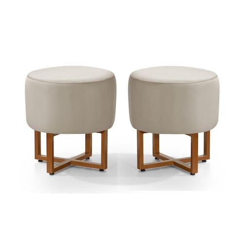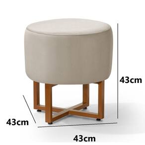 Kit 2 Pufes Banqueta Redonda Para Sala Decoração Interior Pes Ferro Cobre Tecido Bege