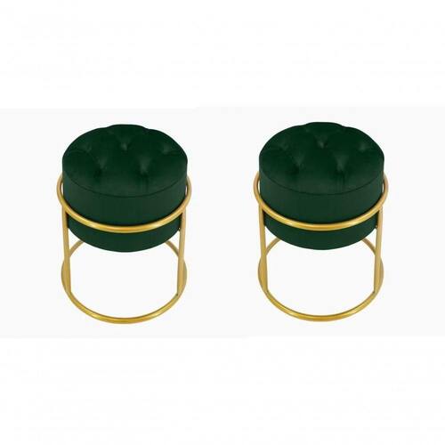 Kit 2 Puff Banqueta Estofado Decorativo Base De Ferro Capitonê Suede Verde Eli Móveis E Decoração