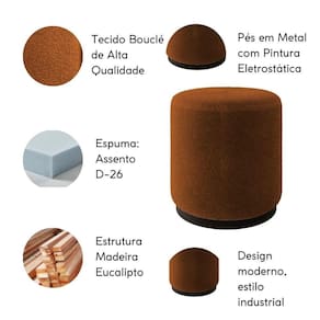 O Puff Redondo Orlandoé revestido em tecido Bouclé ou Linho, com os pés aparentes no estilo industrial trazendo um toque de modernidade, é o móvel perfeito para valorizar a sua decoração.