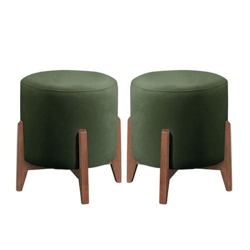 Kit 2 Puff Decorativo Para Sala Redondo Luxo Atenas Suede Verde